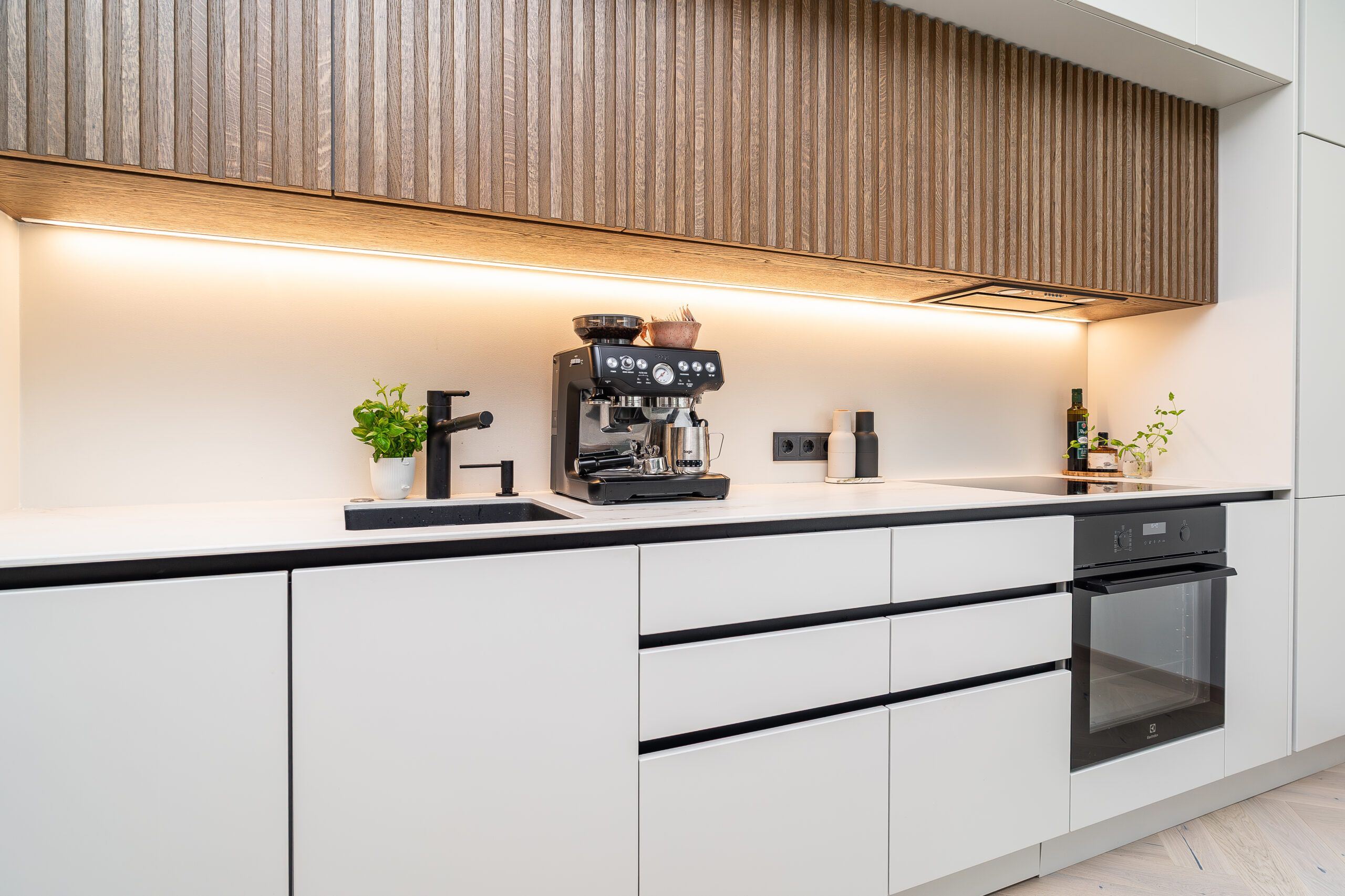 • Täielikult integreeritud tehnikaga: nõudepesumasin, külmik, ahi, induktsioonpliit ja automaatne kubu
