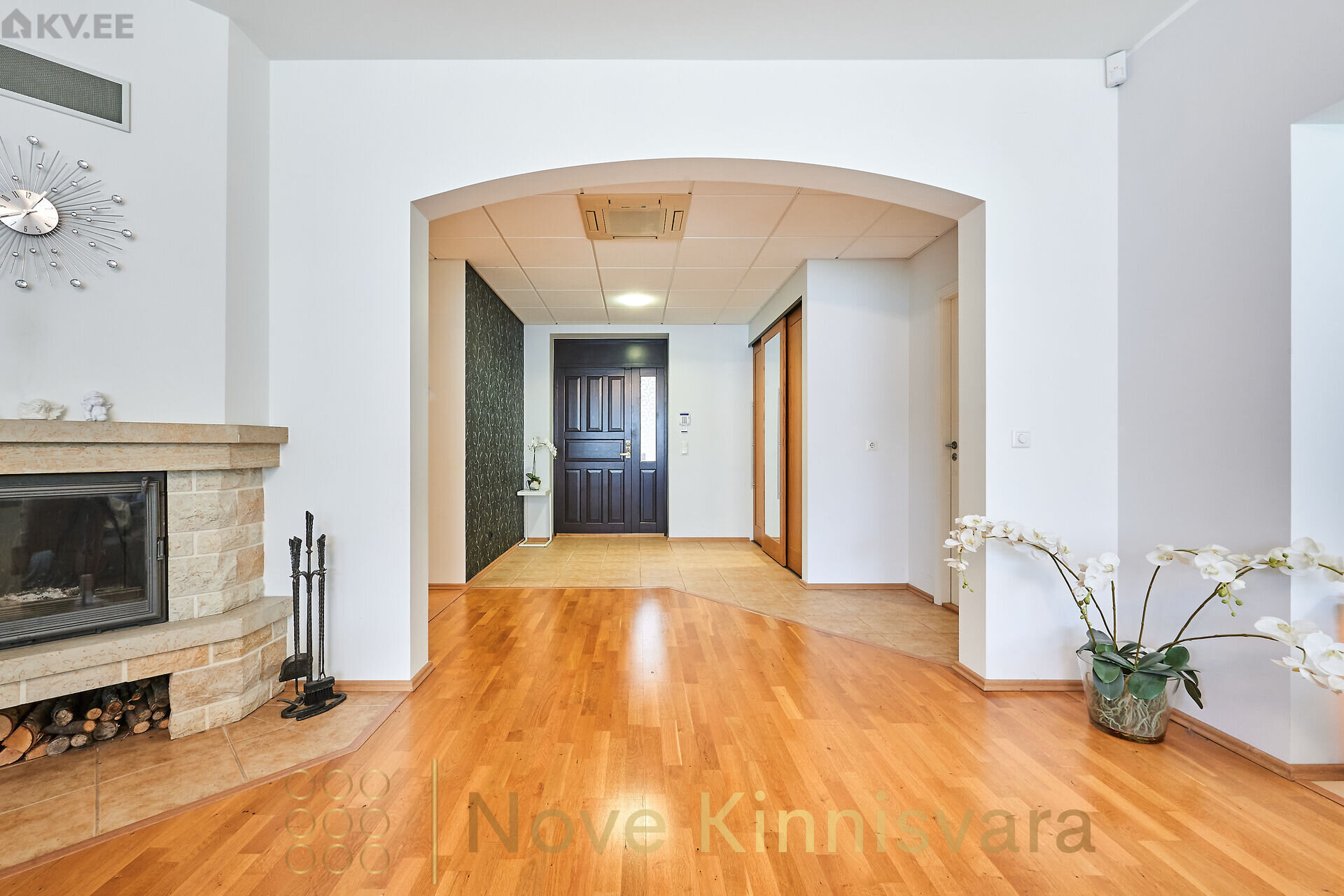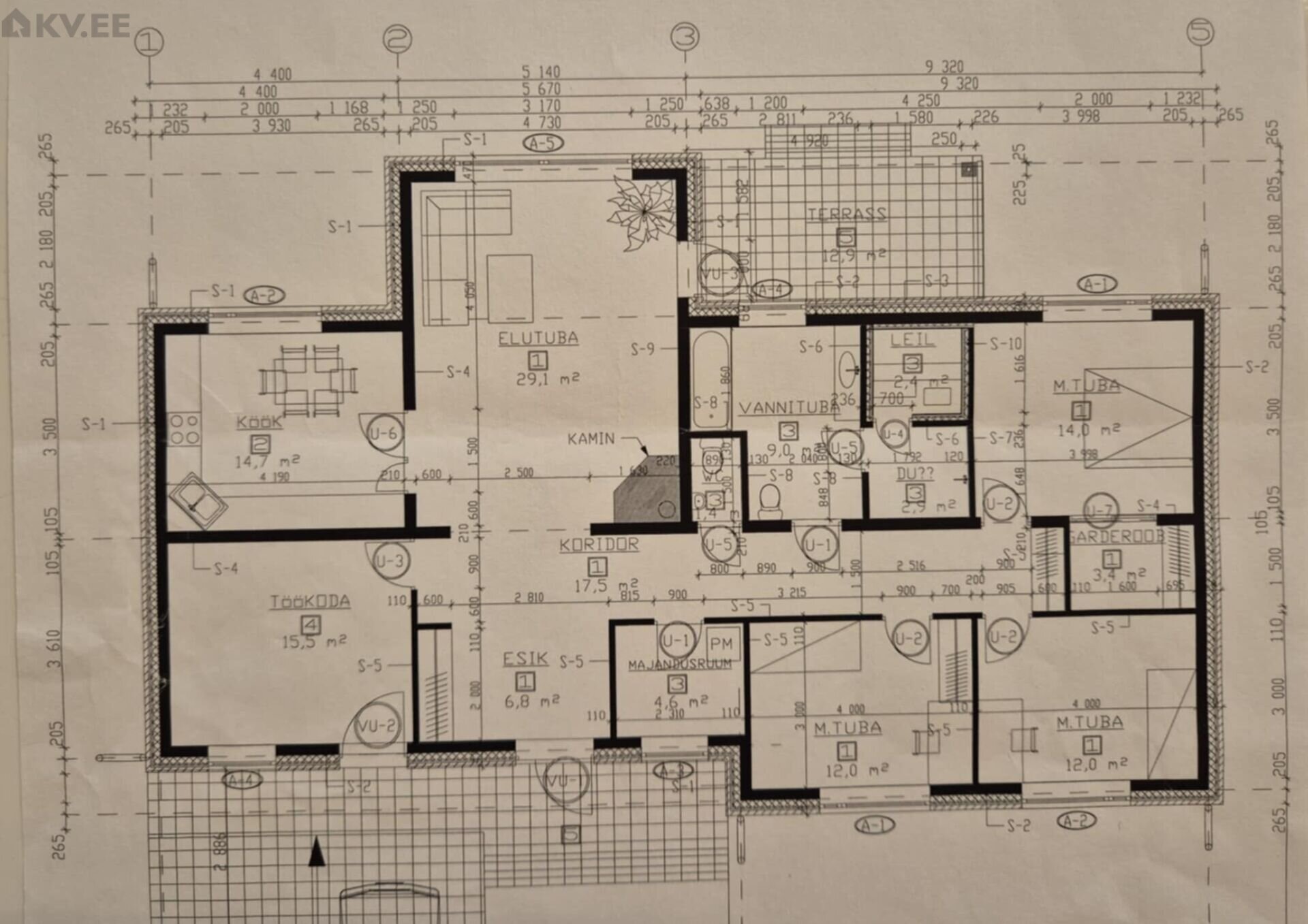 Avar elutuba hubase kaminaga ja pääsuga terrassile.