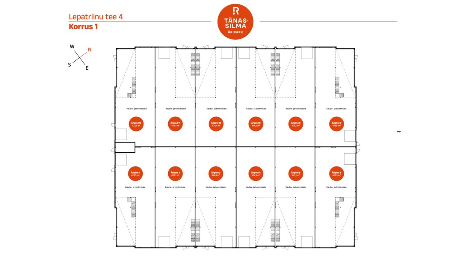 Hoonesse on planeeritud ruumid vahemikus 470 m2 kuni 1500 m2. Hetkel on võimalus luua ruumilahendus vastavalt kliendi vajadustele. Paindlik kontseptsioon annab võimaluse tuua ühe katuse alla nii töökoja, lao, tootmise, kontori kui ka esindusruumid. Hästi nähtav asukoht ja läbimõeldud taristulahendused annavad head eeldused ka kaubandusega tegelevatele ettevõtetele.